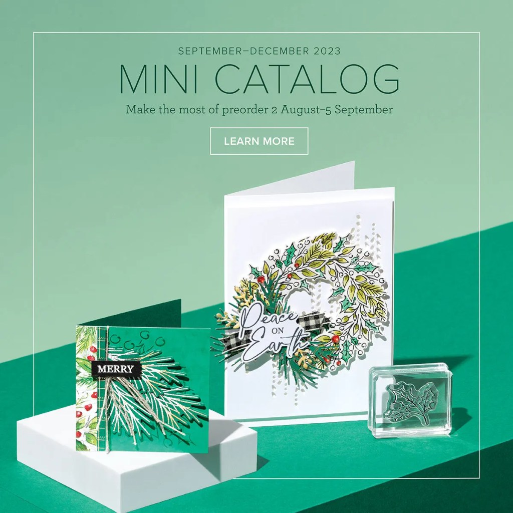 Wednesday, September 6th, the Mini Catalog goes live!! Do you have your catalog yet? If not, and you don’t have another demonstrator, I’d love to be your demonstrator and send a catalog. Email me and I’ll send it to you – StampinWithPatricia@Outlook.com don’t forget to include your address OR on the 6th I’ll post a digital link to the new Mini here!! If you’re on a computer check out the side bar to your right for a link and if on a phone or tablet scroll to the bottom of the last few posts for a link. Then when you get your catalog post a photo of you holding the catalog on our Facebook page, StampinWithPatricia to be entered in the drawing for a free stamp set (no date set yet but don’t delay).